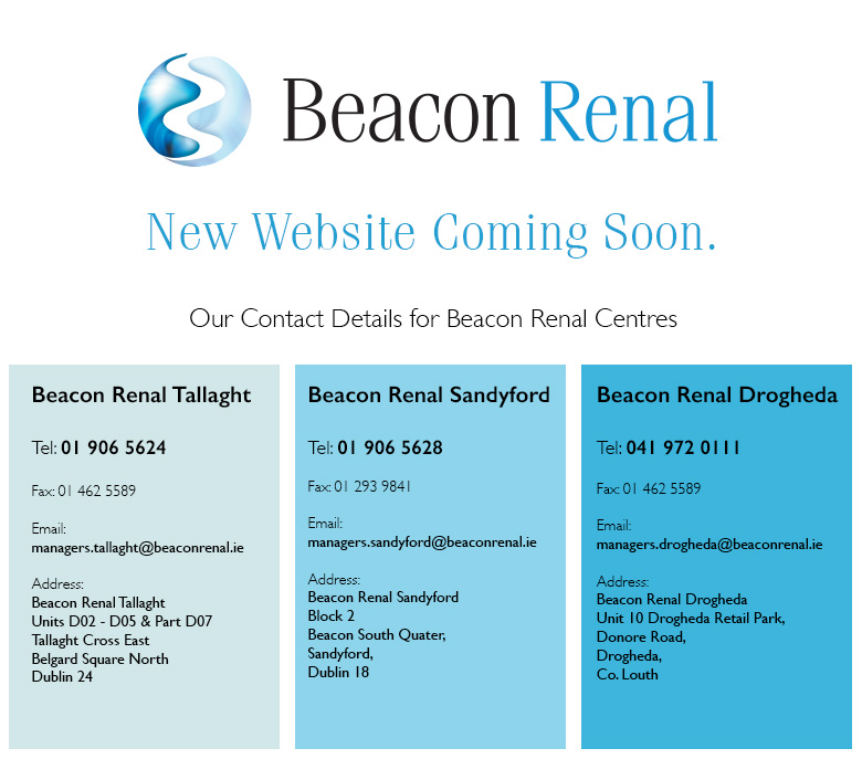 Beacon Renal was established in 2004 by Beacon Medical Group. We are now one of the largest providers of Dialysis in Ireland and operate three renal dialysis clinics in Drogheda, Tallaght and Sandyford. We were the first Renal Satellite Dialysis unit in Europe to achieve Joint Commission International Gold Seal Accreditation in recognition of our commitment to excellence.